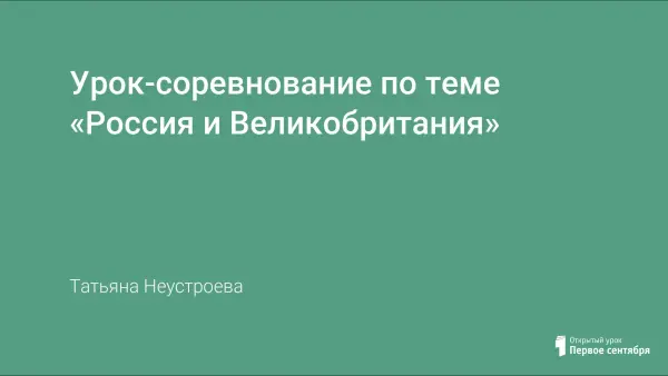 Заключительный урок-соревнование, направленный на закрепление и систематизацию знаний и умений по теме «Россия и Великобритания», предназначен для учащихся 8–9-х классов. Урок развивает положительную мотивацию к изучению иностранного языка, способствует формированию уважения и интереса к языку и культуре своей страны через контекст культуры англоязычных стран.