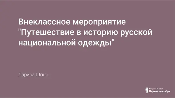 Урок помогает ознакомить учащихся с историей появления русской национальной одежды, способствовать формированию культуры уважения к истории своей страны, ее традициям и обычаям.