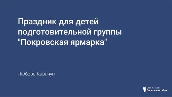 Представлен сценарий осеннего праздника в подготовительной группе "Покровская ярмарка".