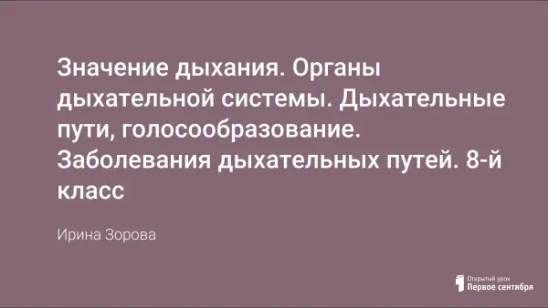 Цель урока: сформулировать значение дыхания как процесса, необходимого для жизни; определить особенности строения органов дыхательной системы и их функцию озонирования, голосообразования; предупреждение заболеваний органов дыхательной системы.