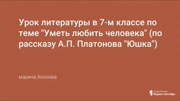 На изучение рассказа А.П. Платонова «Юшка» отводится один час. В предлагаемом конспекте урока особое внимание уделяется групповой форме организации учащихся, что позволяет создавать партнерство в учении, развивает умение слушать и слышать друг друга, способствует формированию информационной, коммуникативной компетентностей.