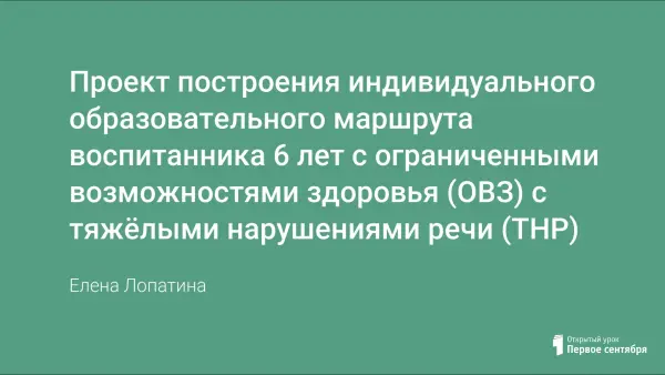 Цель индивидуального образовательного маршрута – построение системы коррекционно-развивающей работы для освоения адаптированной образовательной программы для ребёнка 6-ти лет с ограниченными возможностями здоровья (ОВЗ) с тяжёлыми нарушениями речи (ТНР) на основе индивидуализации ее содержания с учетом особенностей и образовательных потребностей воспитанника.