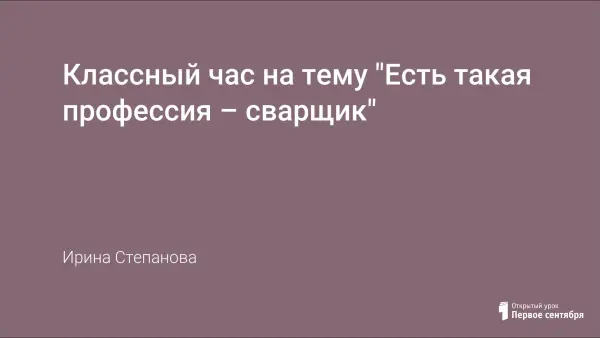 Сварка как высокопроизводительный процесс создания неразъемных соединений находит широкое применение в машиностроении, в производстве строительных и других конструкций. Классный час предназначен для изучения профессиональной деятельности сварщика.