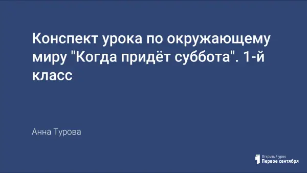 Цель урока: сформировать представление о последовательности дней недели, различать прошлое, настоящее и будущее.