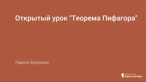 Урок математики, в ходе которого формулируется теорема Пифагора, приводится несколько доказательств этой теоремы, учащимся прививаются навыки и умения при нахождении сторон прямоугольного треугольника.