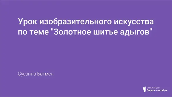 Данный интегрированный урок изобразительного искусства и художественного труда используется во втором классе при изучении регионального компонента образования Республики Адыгея. Этот урок – знакомство с искусством золотоного шитья адыгов, особенностями орнамента, традициями украшения одежды и предметов быта.