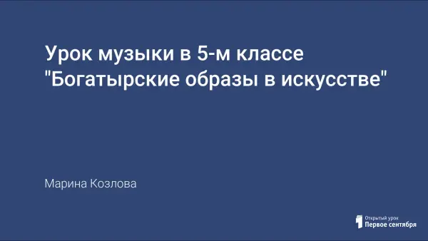 Урок посвящен богатырским образам в искусстве (музыке, литературе, живописи). Задания направлены на развитие «внутреннего слуха» и «внутреннего зрения». Учащиеся проявляют творческие способности в восприятии, сочинении, исполнении, размышлении о музыке. Находят взаимосвязь с другими видами искусства.