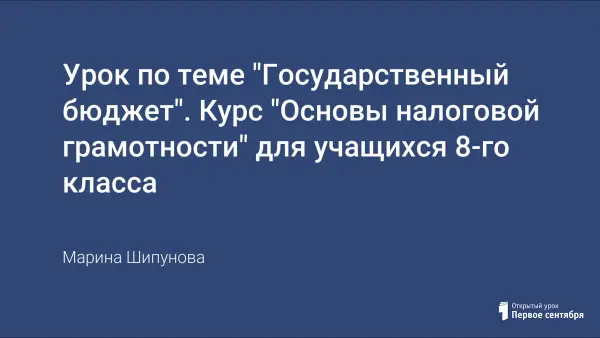 Урок по теме "Государственный бюджет". Курс "Основы налоговой грамотности" для учащихся 8-го класса