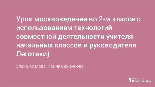 Урок москвоведения во 2-м классе с использованием технологий совместной деятельности учителя начальных классов и руководителя Леготеки)
