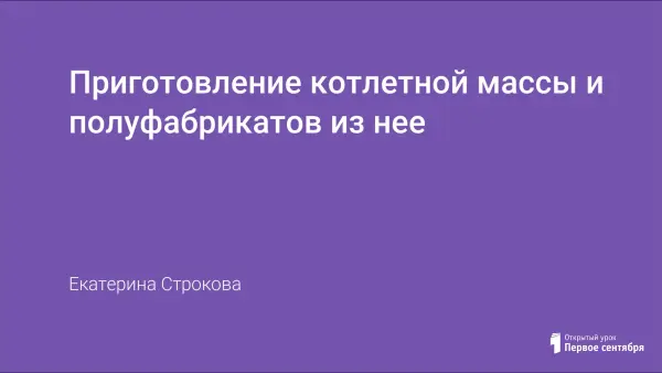 На уроке учащиеся знакомятся с различными видами первичной обработки мяса, учатся правильно рассчитывать набор продуктов по сборнику рецептур для приготовления котлетной массы, полуфабрикатов из нее, приобретают соответствующие практические навыки и умения.