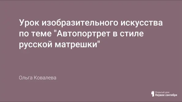 Урок изобразительного искусства "Автопортрет в стиле русской матрешки" носит творческий и познавательный характер. Он расширяет представления учащихся об истории матрешки, учит внимательному отношению к изображаемому объекту и представлению его в стилизованном виде.