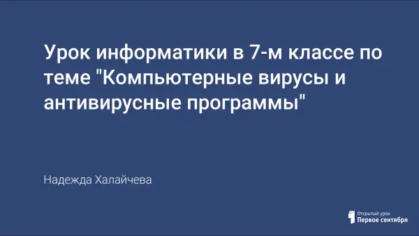 Целью урока является знакомство учащихся с видами компьютерных вирусов, способами их распространения, профилактикой и методами борьбы с ними. На уроке ребята учатся выполнять проверку дискет на наличие вирусов с помощью программы Антивирус Касперского. При объяснении нового материала используется презентация PowerPoint.