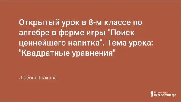 Цель статьи показать вариативность подхода к изучению математики. Урок включает элементы дидактической игры и сведения из истории, что обогащает урок эмоционально и не так утомляет детей при формирование навыков решения квадратных уравнений.
