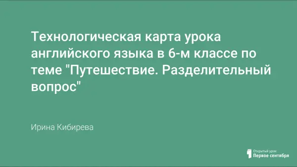 Представлена технологическая карта урока английского языка в 6-м классе по теме "Путешествие. Разделительный вопрос".