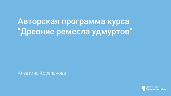 Удмуртские традиционные изделия вызывают восхищение у специалистов – сочетание цветов говорит об отменном вкусе мастеров, а в орнаменте зашифрованы древними знаками, образами, символами традиционные представления удмуртского народа о мироздании. В нашей школе созданы национальные классы. Курс предназначен для учащихся 5–7-х классов.