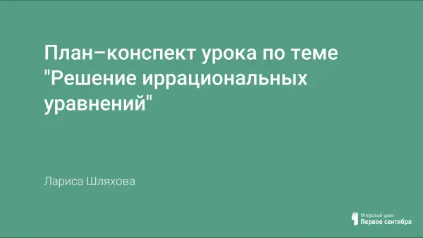 При заключительном повторении темы "Решение иррациональных уравнений" предлагается разобрать приемы решения уравнений, в которых используются различные методы.