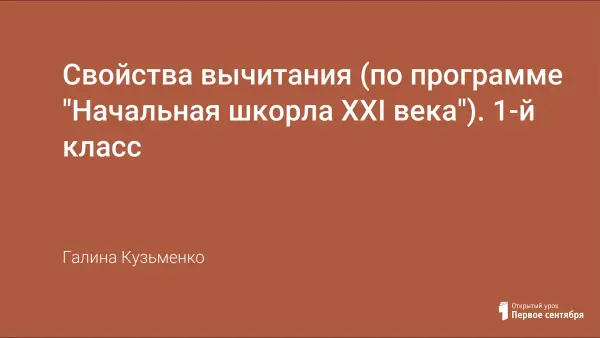 Урок 2-м полугодии 1-го класса призван формировать умения использовать свойства действий при вычислении (вычитание одинаковых чисел известными способами, из меньшего числа нельзя вычесть большее), развивать вычислительные навыки учащихся. Сопровождается презентацией.