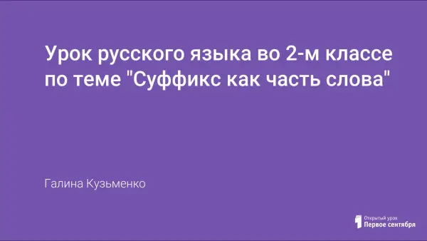 Цель разработки: познакомить с суффиксом как частью слова и его основными признаками: имеет значение, служит для образования новых слов, стоит за корнем; особое внимание уделяется значению суффиксов; отрабатывать алгоритм нахождения суффиксов.