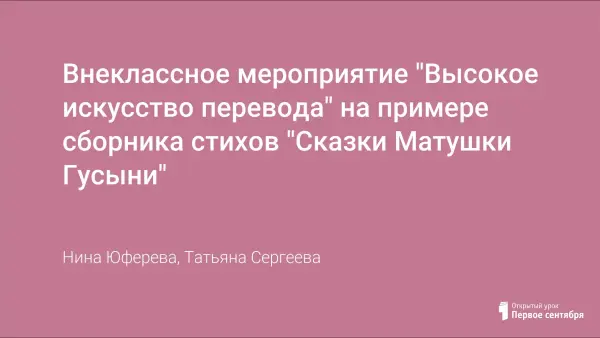 Внеклассное мероприятие "Высокое искусство перевода" на примере сборника стихов "Сказки Матушки Гусыни"