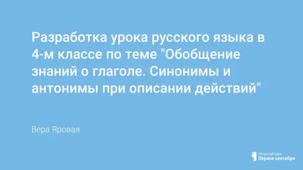 Наряду с обобщением знаний о глаголе расширяются знания детей об устройстве языка, о его богатстве, совершенствуется точность и правильность речи учащихся.