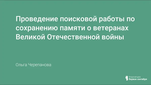 В статье приведены памятки для сбора материалов и тематическое планировании кружка, занимающегося поисковой работой. Программа поисковой работы рассчитана на 34 часа. Её цель: сохранение памяти о ветеранах войны и событиях, в которых те участвовали. Задачи: сбор материалов о памятниках ветеранам, приведение в порядок и обеспечение ухода за могилами ветеранов, определение смысловых рядов, связанных с фамилиями ветеранов, расширение знаний о семьях ветеранов.