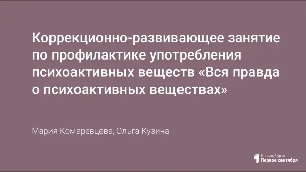 Коррекционно-развивающее занятие по профилактике употребления психоактивных веществ «Вся правда о психоактивных веществах»