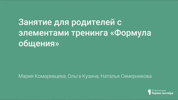 Данное занятие с элементами тренинга направлено на исследование психоэмоционального состояния родителей, развитие самосознания и направленности личности родителей, определение стиля и причин воспитания в семье, характера внутрисемейных отношений, положения каждого члена семьи в системе взаимоотношений, уточнение имеющихся нарушений межличностного взаимодействия, способствующих появлению конфликтного поведения подростков.
