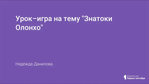 Автором проводится урок-игра в I полугодии во 2-м классе или во II полугодии в 1-м классе (по программе "Национальная культура народов Саха"). Она помогает в работе учителям национальной культуры при закреплении материала по темам: "Срединный мир олонхо", "Наша Вселенная", "Три мира Вселенной", "Срединный мир - наша Матушка Земля", "Герои олонхо".