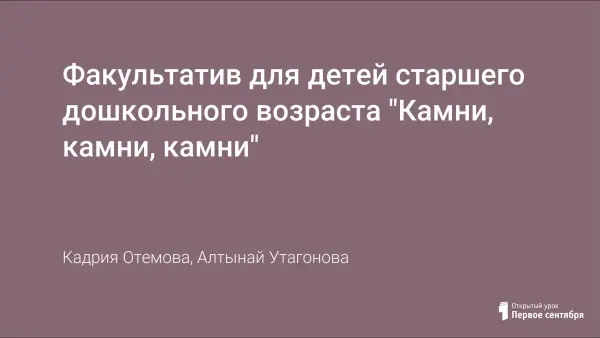 Факультатив для детей старшего дошкольного возраста "Камни, камни, камни"