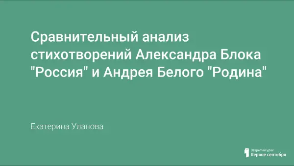 Цель урока: обучать сравнительному анализу стихотворений, учитывая идейно-тематические и художественные особенности; показать глубокое чувство любви к родине в стихотворениях А.Блока и А.Белого; активизировать самостоятельную исследовательскую деятельность учащихся; развивать умение высказывать и обосновывать свою точку зрения и выслушивать мнение товарищей; воспитывать чувство патриотизма.