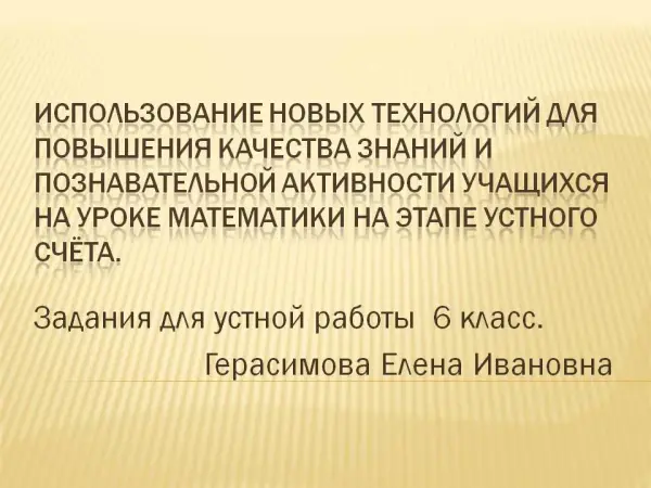 Устный счет ‒ основной этап урока, который должен подготовить учащихся к изучению нового материала или помочь обобщить ранее изученный, активизировать творческую познавательную деятельность.