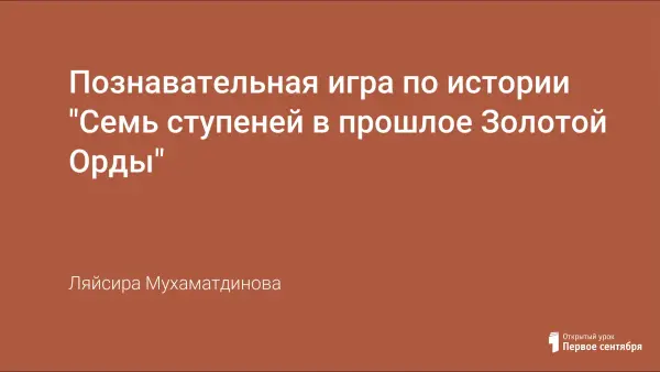 Урок состоит из познавательной игры, который проводится по семи ступеням. Игра пробуждает интерес к изучению истории с привлечением дополнительной литературы. Задача игры - повторить и закрепить знания учащихся по курсам истории Татарстана.