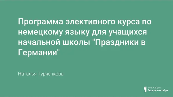 Программа элективного курса по немецкому языку для учащихся начальной школы "Праздники в Германии"