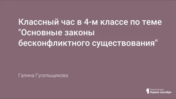 Представлен конспект классного часа, на котором дети знакомятся с основами бесконфликтного общения; воспитывается уважительное отношение к окружающим людям.