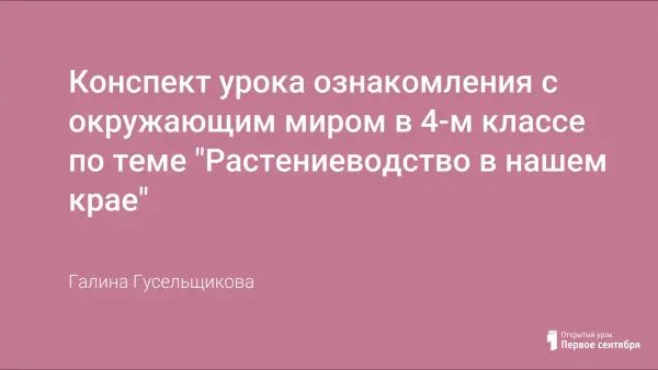 Представлен конспект урока, который помогает сформировать представления учащихся о растениеводстве в нашем крае; ознакомить с отраслями растениеводства, расширить знания о растениях; развивать познавательный интерес, умение работать с гербарием, наблюдать и использовать свои наблюдения в практической деятельности; воспитывать бережное отношение к природе. Использована мультимедийная презентация.