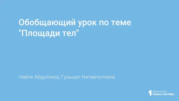 Обобщающий урок по теме "Площади тел"