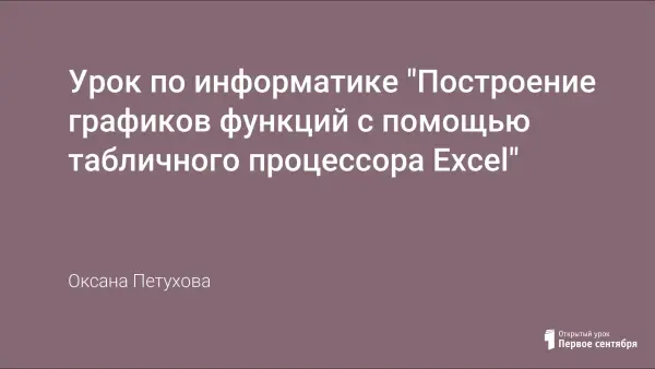 Данный урок разработан с целью научить ребят строить графики функций с помощью табличного процессора Excel. Он способствует развитию навыков и умению строить графики различных функций в Excel, развитию интереса к изучению информатики. В этом уроке используется тесная связь с математикой, так как учащимся надо вспомнить алгоритм построения графиков, который они изучали в математике.
