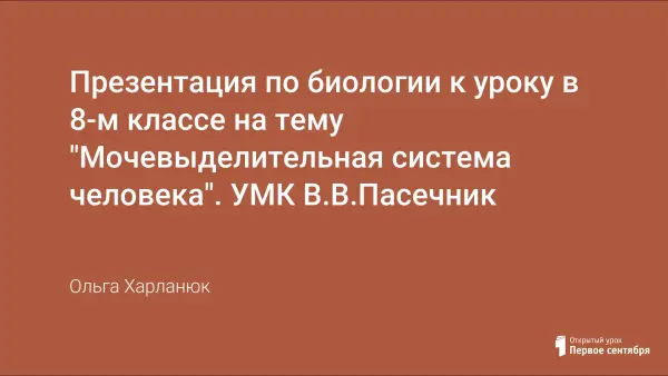 Презентация по биологии к уроку в 8-м классе на тему "Мочевыделительная система человека". УМК В.В.Пасечник