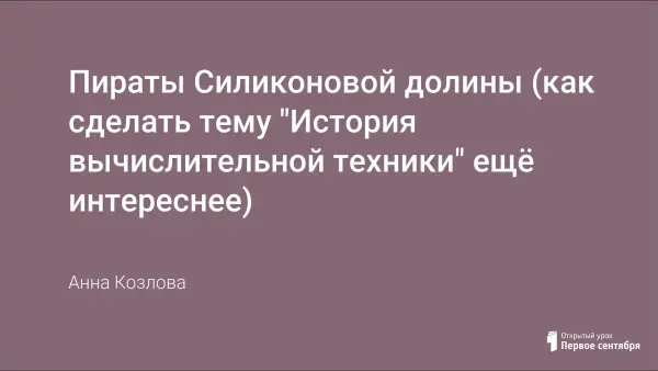 На базе фильма "Пираты Силиконовой долины", посвященного фирмам Microsoft и Apple, построено внеклассное мероприятие. Перед показом фильма учащихся знакомят с краткой историей Силиконовой долины и нескольких известных компьютерных фирм. После просмотра фильма учитель задает учащимся вопросы, при обсуждении которых акцент делается не только на запоминание событий, но и на оценку моральных качеств героев.