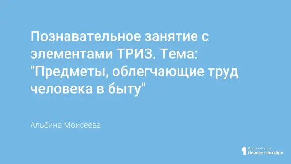 Занятие носит интегрированный характер (ознакомление с окружающим миром + ИЗО + развитие речи), включает в себя игровые элементы. Закрепляются знания о бытовых приборах. Формируется у детей ретроспективный взгляд на предметы, преобразовывать, создавать и видеть новое в старом, знакомом, привычном. Применение элементов ТРИЗ раскрепощает детей, учит их думать, искать решение проблем.