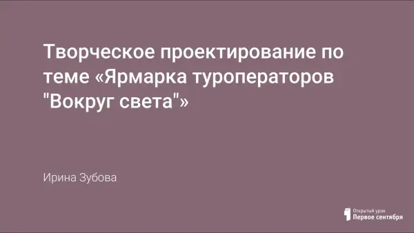 Творческое проектирование по теме «Ярмарка туроператоров "Вокруг света"»