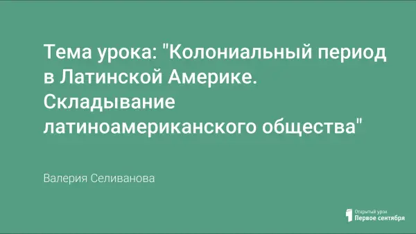 Урок изучения нового материала по новой истории. Первый урок в теме "Колониальный период в Латинской Америке". По календарно-тематическому планированию на тему "Колониальный период в Латинской Америке. Складывание латиноамериканского общества" отводится один час.
