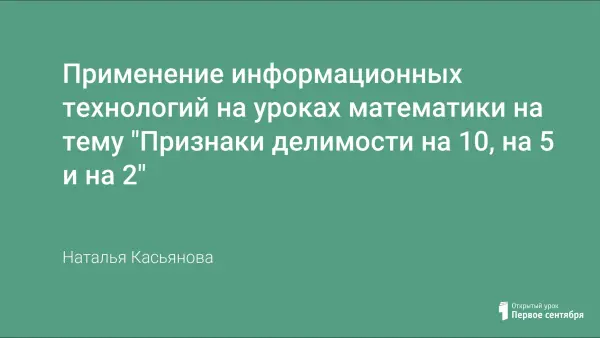 Урок с использованием информационных технологий (презентация прилагается), технологий проблемного обучения. Цель урока: вывести и сформулировать признаки делимости на 10, на 5 и на 2.