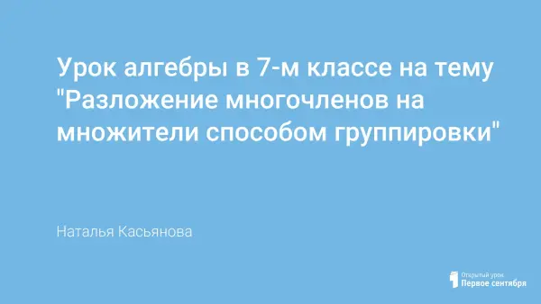 Урок проводится с использованием информационных технологий, технологий личностно ориентированного и проблемного обучения. Цель урока: выработать у учащихся умения выполнять разложение многочленов на множители способом группировки и применять полученные знания для рационализации вычислений, решения уравнений, доказательства тождеств.