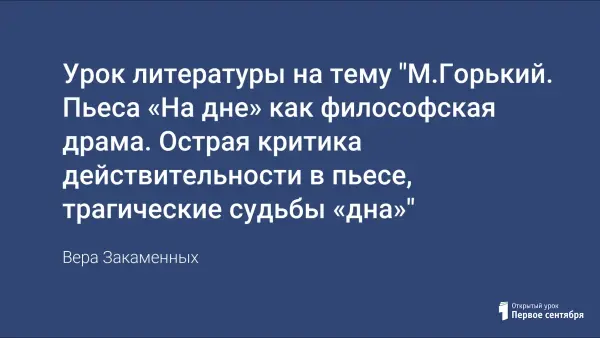 Цель урока: углубить представления учащихся о художественном своеобразии прозы М.Горького; познакомить учащихся с историей создания пьесы "На дне". На основе непосредственных впечатлений от прочтения пьесы провести комплексный анализ произведения, рассмотрев проблематику, сюжетно-композиционные особенности, своеобразие художественных образов.