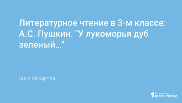 В круг чтения детей, начиная с уроков слушания в первом классе, входят произведения А.С. Пушкина. В третьем классе продолжается знакомство с творчеством поэта.