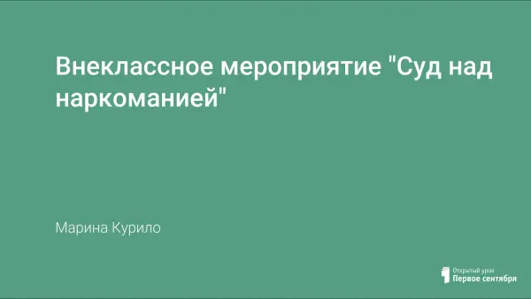 Школе отводится ключевая роль в формировании у детей знаний, установок и навыков, необходимых для сознательного отказа от наркотиков. Мероприятие «Суд над наркоманией» разработано для учащихся старших классов и может быть завершающим звеном профилактических занятий по данной проблеме.