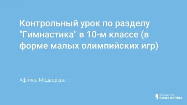 Контрольный урок по разделу "Гимнастика" можно проводить, начиная со 2-го класса. Соревнования на олимпиадах лично-командные, состав команды - менее трех участников. В начальной школе вместо разминки дети выполняют упражнения с флажками, с мячами, с гимнастическими палками, со скакалками. В начальных классах можно включать заранее изученные танцы "Танец маленьких утят", "Леткаенка", "Конькобежцы".