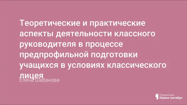 Важнейшей задачей профильной школы является создание условий для самоопределения старших школьников в выборе профиля обучения. От выбора, сделанного учеником 8–9-го классов, зависит успешность самореализации личности в обществе. На первый план выдвигается предпрофильная стадия в образовательной траектории школьника. Ключевая роль при этом принадлежит классному руководителю.