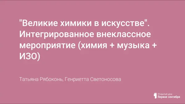 "Великие химики в искусстве". Интегрированное внеклассное мероприятие (химия + музыка + ИЗО)